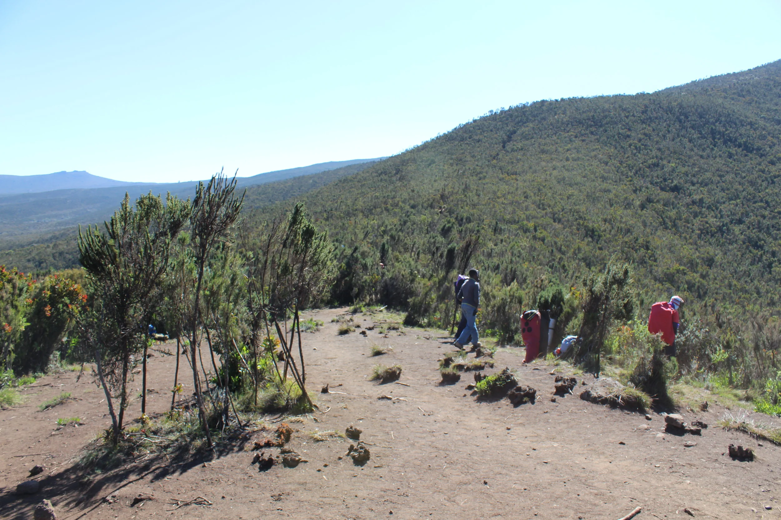 The day ended up being better than expected. There was a lot of uphill, but it wasn’t too bad when we were going pole pole. A lot of porters passed us along the way, carrying their own backpacks as gear on their heads.